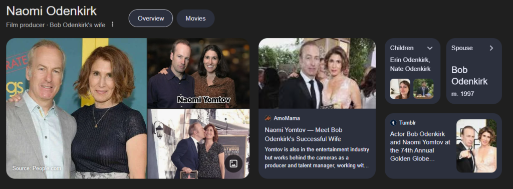 naomi yomtov met actor Bob Odenkirk in 1994 at a comedy show in West Hollywood, and they quickly became close. The couple married in 1997, and their partnership has lasted over 25 years — a rare feat in Hollywood.